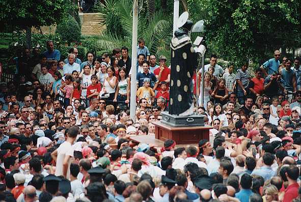 Il Santo viene trasportato davanti la Chiesa per una delle sue caratteristiche "soste"