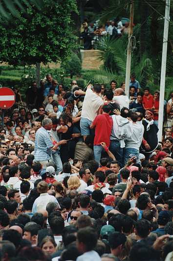 Altro momento di accesa devozione in cui il Santo viene completamente sommerso dai corpi dei fedeli